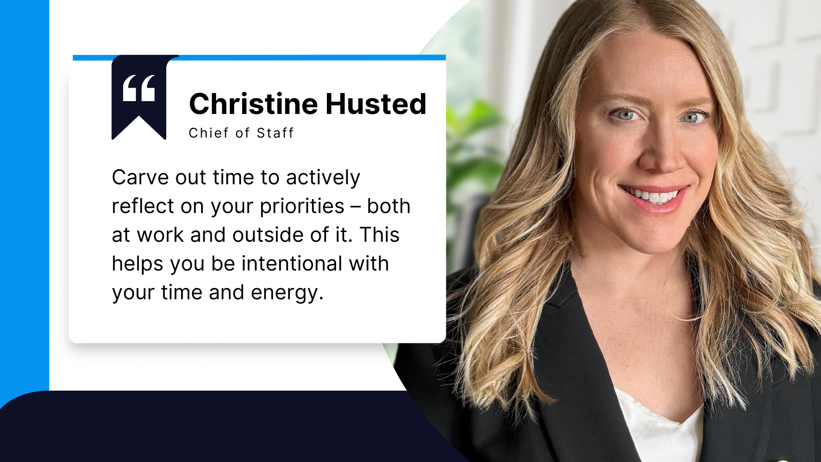 Christine: Carve out time to actively reflect on your priorities – both at work and outside of it. This helps you be intentional with your time and energy. It’s okay for your priorities to shift over time. Reflection with a trusted colleague or friend can be especially helpful, as they may see patterns you don’t.